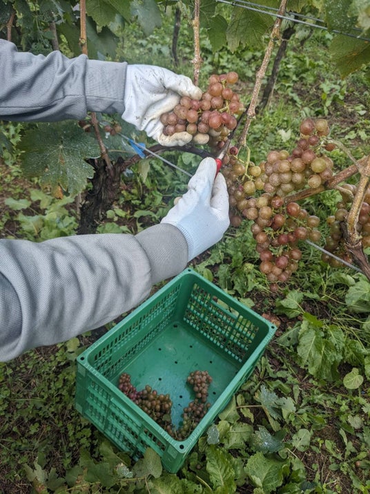 一部、早摘みしたシュロンブルガーを使用したオレンジワイン製法によるワインも今年度は挑戦しました。香りについては果皮から抽出された圧倒的なマスカット香を感じられ、オレンジワインの特徴でもある渋味等は無いことから「香りを飲み込む」と表現できるほど香り高いワインとなっています。