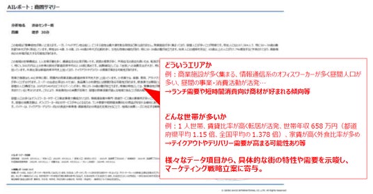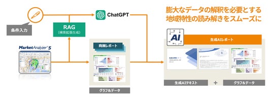 こうした昨今の流れを汲み、当社では、自社ソリューションをAIでさらに使いやすくする取り組みを行っています。まずは第一弾として、データ解析に不慣れな方でも、地域特性を具体的かつマーケティングに活用しやすい形で把握できる「商圏レポートAI」機能を開発し、提供することとなりました。