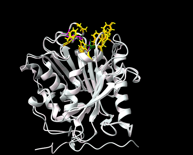 北海道沿岸の海水中にPBSフィルムを浸漬、培養することでフィルム上にバイオフィルムを形成させ、バイオフィルムの菌叢解析によりビブリオ科細菌がバイオフィルムの主体であることが分かりました(図1)。当該バイオフィルムからエマルジョン化PBSを含有する固形培地を用いたクリアゾーン試験により海洋性PBS分解微生物を探索したところ、新規な海洋性PBS分解微生物としてV. ruberの単離に成功しました。V. ruberのゲノム解析を行い、既知のPBS分解酵素遺伝子に類似している遺伝子を検索したところ、PBS分解酵素遺伝子の候補を保有していることが分かりました。本PBS分解酵素候補を、大腸菌により生産させ、かつ、この組換え酵素を精製することにも成功しました。このV. ruber由来PBS分解酵素はPBSフィルムを分解することができ、既存のカビ由来酵素よりも分解性が高いことが分かりました。これは海洋性細菌由来のPBS分解酵素を同定した初めての成果です。さらに、この組換え酵素は、10℃の低温下においても分解活性を示すことが分かりました。このV. ruberのPBS分解酵素の三次元構造をシミュレーションしたところ、既知のPET分解酵素の構造と極めて類似しており、PET分解の活性中心とPET結合に関与するアミノ酸がよく保存されていることから(図2)、本酵素のPET分解能も期待されます。