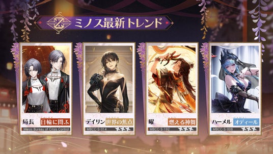 ■ 販売詳細:期間中、局長衣装「日輪に問ふ」、星3衣装「デイリン・世界の焦点」「曜・燃える神舞」「ハーメル・オディール」、星2衣装「カメリアン・夢の啓示」「Mr.Fox・晨昏遊戯」「マックイーン・灼心妄景」「ウェンディ・チェーンソーの恐夜」が期間限定で復刻販売されます。