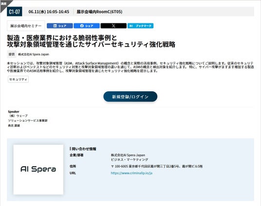 AI SPERAは、6月11日(水)開催の『Interop Tokyo 2025』において、『製造・医療業界における脆弱性事例とASMに基づくセキュリティ戦略』をテーマにセミナーを行います。