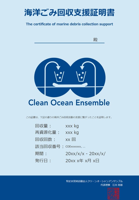 クリーンオーシャンアンサンブルは、協賛企業様に対し公式サイトやイベント等でのロゴ掲載・紹介を行うほか、証明書等の提供を通じてパートナーシップを支援いたします。