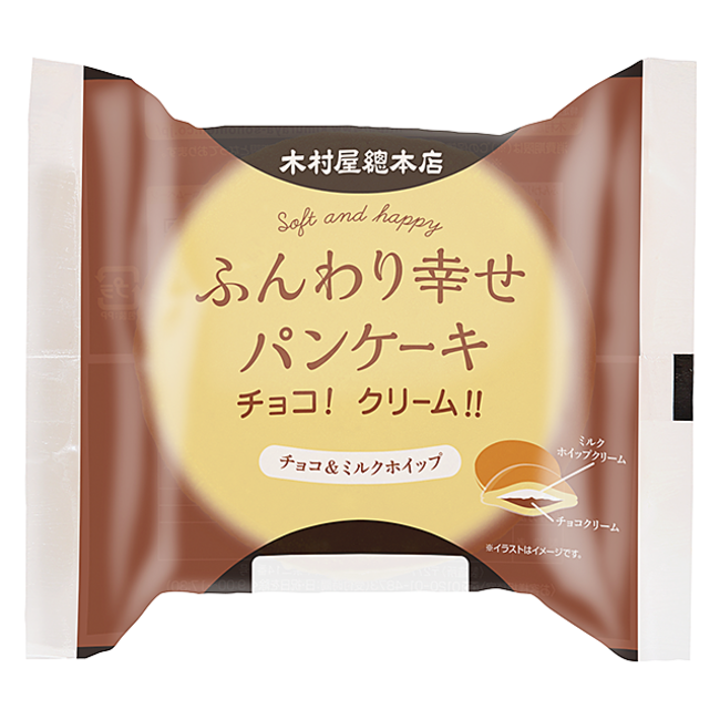 メレンゲを使ったふんわりパンケーキ生地で、チョコクリームとホイップクリームをサンドしました。