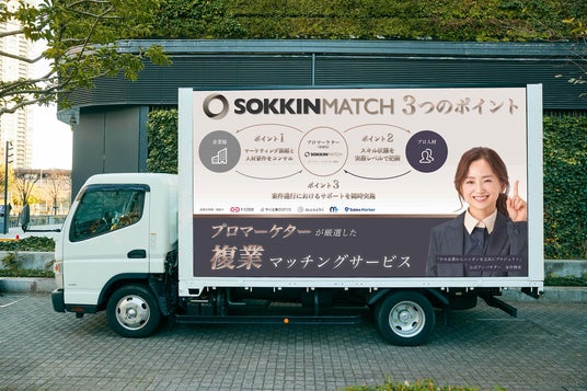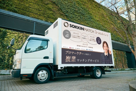 質の高い人材マッチングサービスを提供する「SOKKIN MATCH」の広告トラックが3月1日から4月30日まで新宿、渋谷、原宿を走行します!
