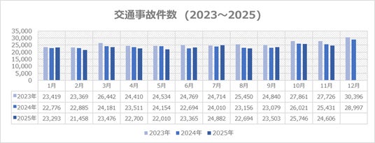 警察庁が発表している「交通事故統計」によると例年12月がもっとも事故が多いことが分かります。