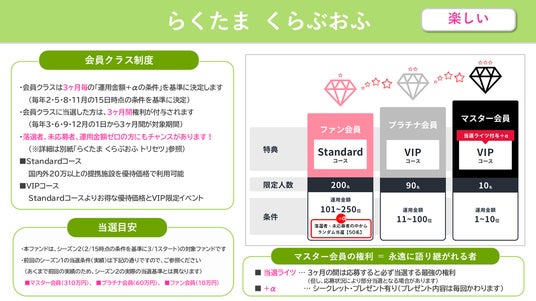 本ファンドへの投資額は「らくたま くらぶおふ」(シーズン2=2025年3月1日から3ヶ月)の参加基準となる2月15日時点の運用金額に合算されます。魅力的な特典が満載の「らくたま くらぶおふ」にぜひご参加ください。詳細はこちらのPDF資料「らくたまWORLD(新しい冒険をはじめよう!)」をご確認ください。