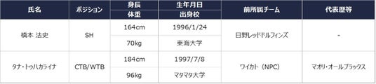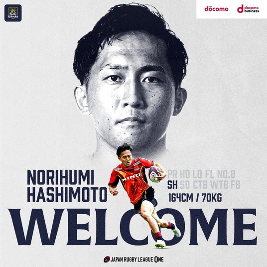 この度、昨シーズンまで日野レッドドルフィンズで6シーズン在籍し、SHとして攻守にバランスの取れた橋本選手が加入いたします。