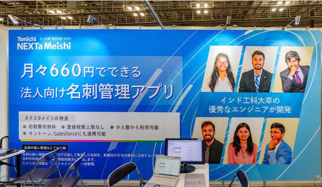 9月21日放送のテレビ東京「WBS(ワールドビジネスサテライト)」でも紹介された「ネクスタメイシ」は、月々660円で▽名刺管理▽検索▽共有▽自動名寄せ▽経歴表示▽メモ書き▽タグ付け▽オンライン名刺交換――など多様な機能を装備している利用者急増中の名刺管理アプリです。展示会では、理系大学世界最高峰の一つと称されるインド工科大学卒のエンジニアもブースに立ち、名刺管理アプリの導入を検討されている皆様の疑問・質問・課題解決のお手伝いをいたします。