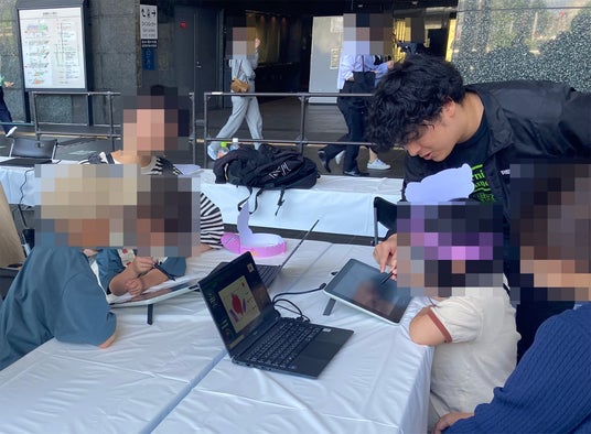 プロのイラストレーターが利用しているペンタブレット端末を使用し、絵に色を塗ったり、自由にイラストを描いたりするクリエイティブ体験を行いました。