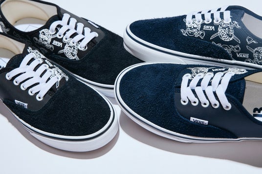 本コレクションでは「AUTHENTIC」をピックアップし、アッパーには80~90年代のVANSを彷彿とさせるパイレーツ柄にリフレクター素材をミックス。またシュータンの裏側には「10th」と刺繍されたウーブンラベルを配置し、インソールにはコラボレーションの証であるVANSロゴとBILLY’Sが並列。