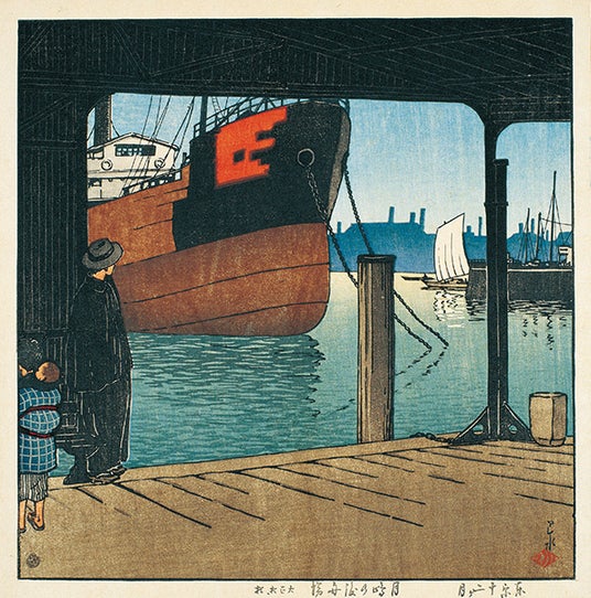 《月嶋の渡舟場》 東京十二ヶ月 1921(大正10)年10月 版元・渡邊木版美術画舗蔵