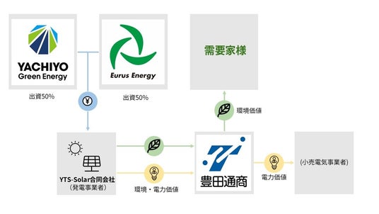 八千代エンジニヤリング株式会社のグループ会社で、再生可能エネルギー事業を手掛ける八千代グリーンエナジー株式会社(本社:東京都台東区、代表取締役社長:水野 高志、以下「八千代グリーンエナジー」)と、国内No.1の風力・太陽光発電事業グループである株式会社ユーラスエナジーホールディングス(本社:東京都千代田区、代表取締役社長:諏訪部 哲也、以下「ユーラスエナジー」)は、共同出資する「YTS-Solar合同会社」(以下「新会社」)を通じて、バルクスキームにより開発された高圧太陽光発電所の電力を豊田通商株式会社(以下「豊田通商」)に供給する電力受給契約を締結しました。
