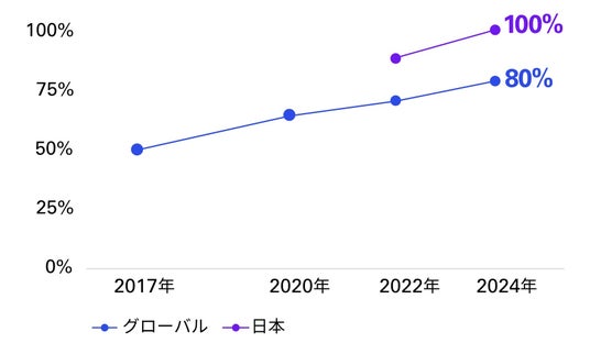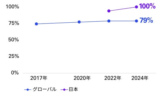 サステナビリティ情報を開示する企業の割合(2017~2024年)