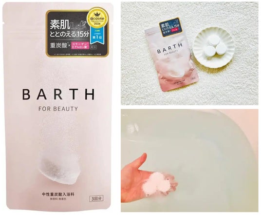 重炭酸入浴剤のBARTHブランドの美容保湿成分を配合した浴用化粧料。まるで美容液のようにまろやかなお湯が全身を包み込み、肌にうるおいとハリを与えます。
