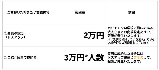 商談設定で2万円、成約時には報酬3万円×人数の紹介制度を開始
