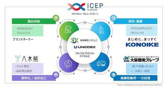 大栄環境株式会社、資源循環システムズ株式会社、株式会社八木熊、ユニアデックス株式会社の4社により、各社の強みを活かした廃プラスチックの回収・再生樹脂化・成形加工・製品化をワンストップで提供し企業のリサイクルスキームの構築を支援