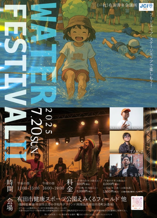 2025年7月20日(日)、和歌山県有田市にて「ARIDAウォーターフェスティバルII」が開催されます。昨年大好評だったウォーターフェスティバルが、今年はさらにスケールアップして帰ってきます!