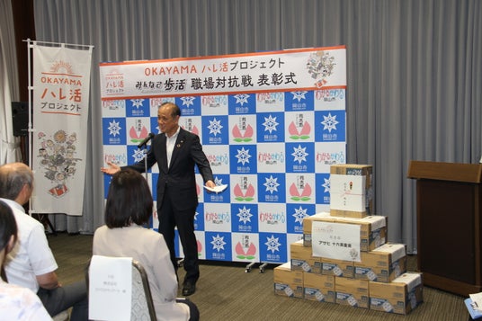 岡山市の健康ポイント事業「OKAYAMAハレ活プロジェクト」のウォーキングイベント「みんなで歩活(あるかつ)」職場対抗戦の上位企業を表彰しました。
