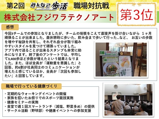 第三位 株式会社フジワラテクノアート 平均歩数 10,429歩