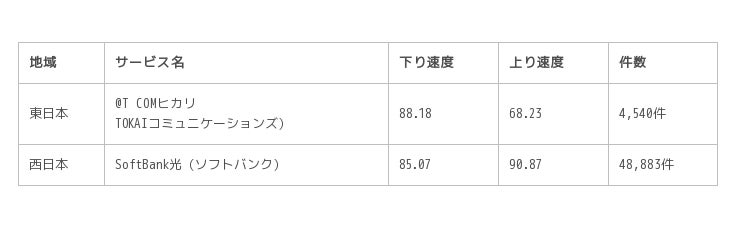 利用データ:スマートフォンアプリ版およびPC版「RBB SPEED TEST」のユーザー測定データ