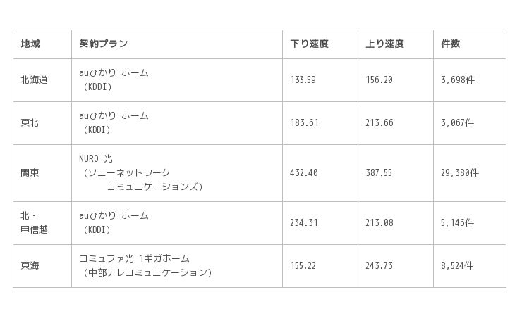 集計方法:各部門について下りの平均速度が速いサービスを表彰している。データ数1,000件未満のプラン・サービスは対象外。また、速度制限中と思われるデータや理論値を超えるデータは異常値として排除した。
