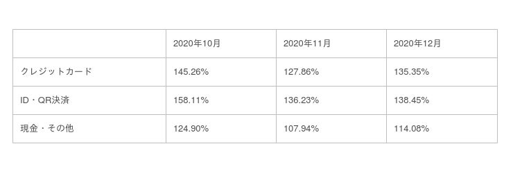2020年10月が他の月と比較して高い数字を示したのは、2019年10月は消費税増税の影響から買い控えが起こったためと推測されます。