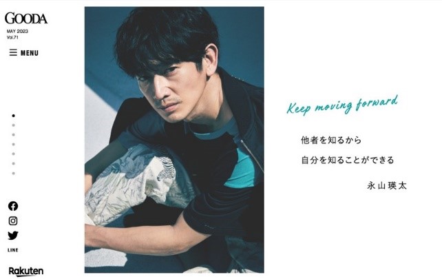 手にするだけで毎日ちょっとハッピーな気持ちになれる。そんな、とっておきを紹介しているライフスタイルWEBマガジン「GOODA」。今月号の表紙には、映画、ドラマ、CMと広く活躍する実力派俳優・永山瑛太さんに初めてご出演いただきました。