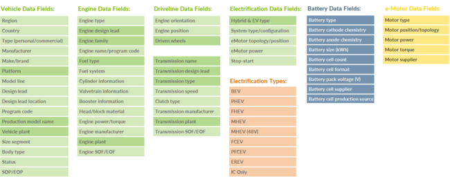 全世界の将来7年に渡る生産台数予測をカバーし、1,000車種を超える電動車(BEV/HEV/PHEV)について各車のバッテリー(サプライヤー、容量、形状、正極材、搭載個数、等)と駆動モーター(出力、搭載位置、個数、サプライヤー、等)の詳細情報が収録されます。
