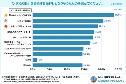 FX取引の開始には、学習のサポートやデモ取引/練習アプリの提供など、ユーザーの不安を軽減するための環境が重要であるといえそうです。