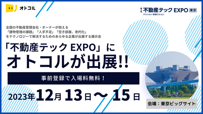 アイザック株式会社(本社:東京都渋谷区、代表取締役社長 田中 和希)は、RX Japan株式会社が2023年12月13日(水)~15日(金)に開催する不動産テックの専門展示会「不動産テック EXPO」に出展することをお知らせします。当社のブースでは、自動架電ツール「オトコル」の活用方法を具体的にご紹介する予定です。