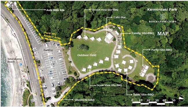 本事業は、神奈川県立公園初のPark-PFI事業(公募設置管理制度※1)として、神奈川県立観音崎公園(横須賀市)への集客、地域の活性化を目的とした事業です。