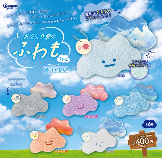 ユーモアがあってかわいいカプセルトイを企画販売している株式会社ピーナッツ・クラブ(本社・大阪府東大阪市、代表取締役社長・前田泰裕)は、カプセルトイの新製品『おてんき雲のふわもちゃん ぬいぐるみ』を2024年6月下旬より順次、全国のカプセルトイ売場にて発売します。