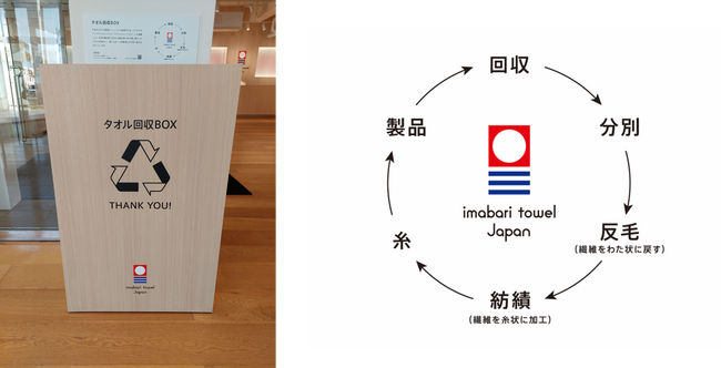 今治タオル工業組合(愛媛県今治市 理事長 正岡裕志)により推進されるジャパンブランド「今治タオル」は、日本最大のタオル産地として資源(コットン)ロスの削減を推進するため、今治タオル 本店に「タオル回収BOX」を設置し、使い終わった今治タオルを原料とし新たな糸へと再資源化する取り組みを開始します。