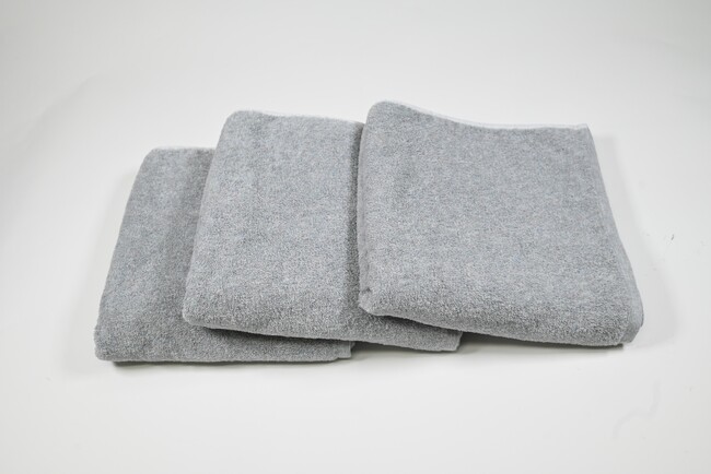 L∞PLUS糸を用いて今治にて再度タオルに製織したのが「アップサイクルタオル」です。通常であれば廃棄される素材を活かした、地球環境にも優しいタオルとなっています。現在はモデル作りの段階で、今後は今治タオル各社において商品化を検討しています。