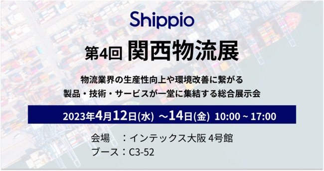 国際物流プラットフォーム「Shippio(シッピオ)」を提供する、株式会社Shippio(本社:東京都港区、代表取締役CEO:佐藤 孝徳、以下Shippio)は、「第4回関西物流展」に出展いたします。
