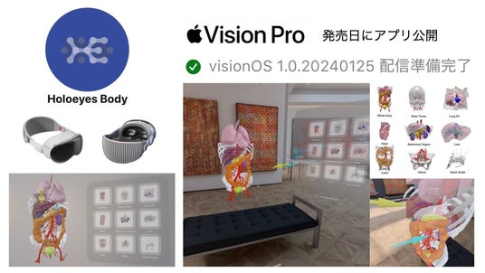 Holoeyesは、米国時間2024年2月2日のApple Vision Pro発売開始に合わせて、Vision OSアプリ「Holoeyes Body」をリリースし、同日のカンファレンス内で世界初披露しました。
