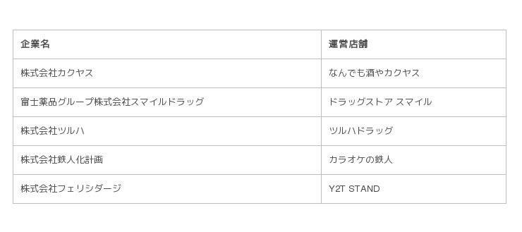 参画企業 運営店舗(50音順)