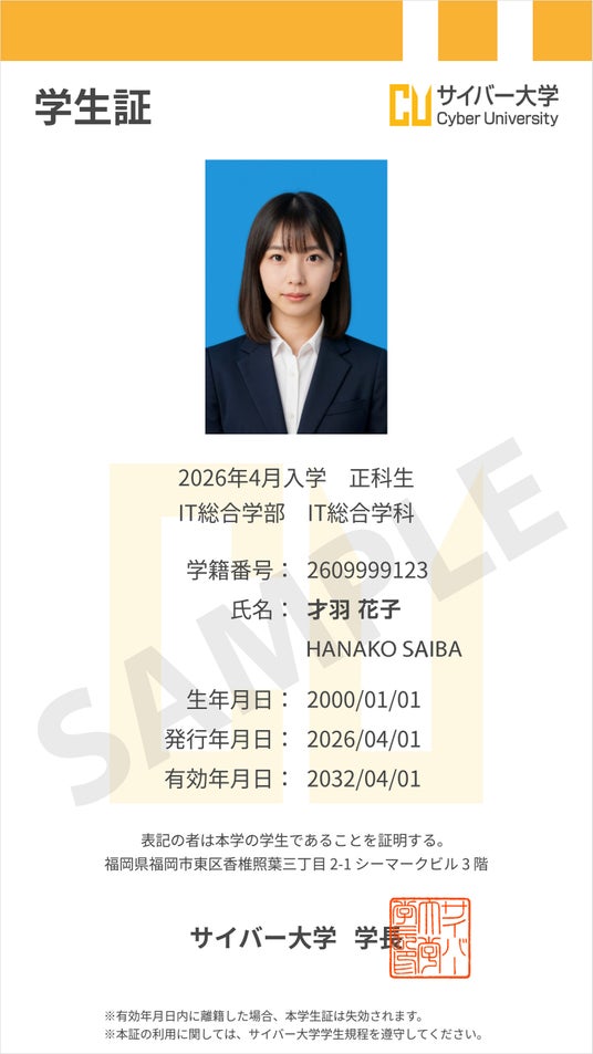 ソフトバンクグループのサイバー大学(学長:川原 洋、所在地:福岡市東区、以下「本学」)は、株式会社ネットラーニングホールディングス(代表取締役:岸田 徹、所在地:東京都新宿区)が開発した新技術『スマート学生証』を、2026年度から全学生向けに導入することを決定しました。
