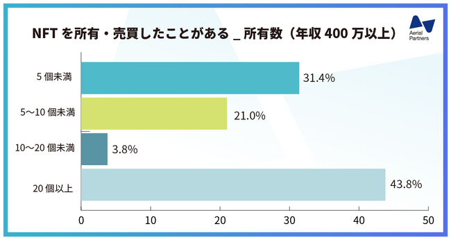 NFTはどんな人が集めてる?所有数や購入価格、年代からNFT投資の成功・失敗談までアンケートで徹底調査:https://www.aerial-p.com/media/nft-awareness-survey.html