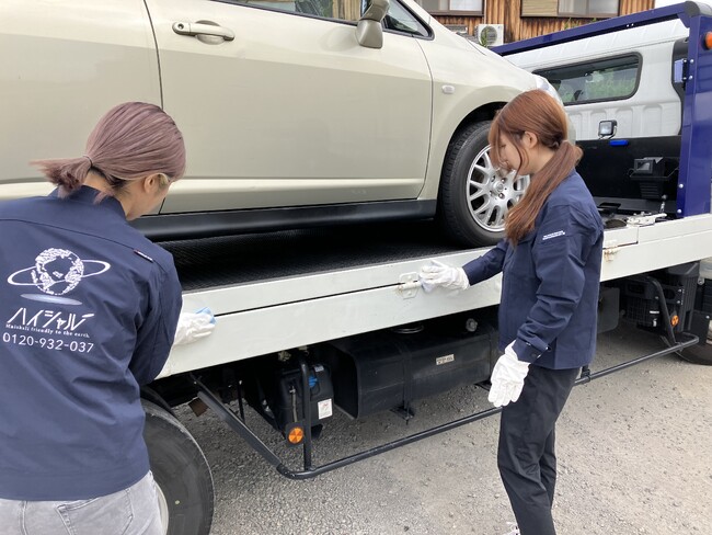 ユニオンエタニティは主軸事業である廃車の買取りサイト『ハイシャル』で廃車のDX化を成功させたIT企業ですが、ITだけでなくリアルの面でのサービスも大切にしています。近畿や中部エリアでは廃車の引取りを強化するため、自社で積載車を保有することでリアル面のサービスに注力しています。また、処理工場や輸出業者との連携を強化するために、オフィスがある大阪府内には2ヶ所のヤードを保有しています。新卒社員をはじめユニオンエタニティの従業員はオフィス勤務となるため、廃車を身近に感じてもらうとともにリアルの面の大切さにも触れてもらうため、積載車の洗車を社員で行うことに決定しました。