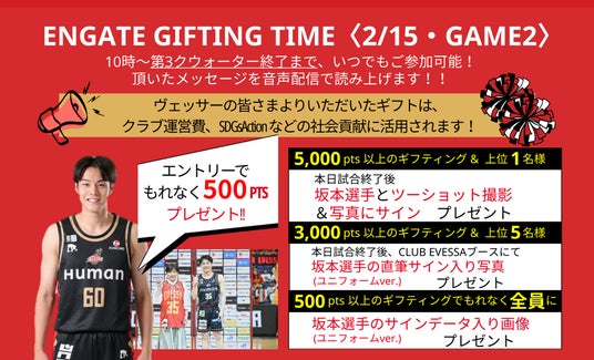 2026年2月15日開催の「大阪エヴェッサ vs 京都ハンナリーズ戦」においても、