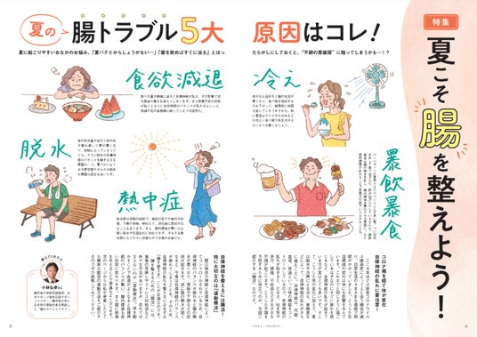 夏の腸トラブル5大原因はコレ!/30秒腸活/腸のお疲れ度チェックシート/腸内環境を整えてくれる!発酵食品の元気おやつ/暑さ・冷えW対策はじめました。/スペシャルインタビュー 遠藤憲一さん