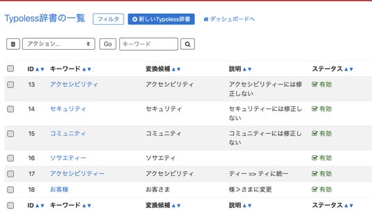 「Typoless」プラグインは、朝日新聞社の文章校正AI Typoless (タイポレス) を PowerCMS X の管理画面で利用できるプラグインです。カスタム辞書も管理画面内にあります。