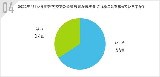 授業の一環で(文化祭などの学校行事や授業)でキャッシュレス決済について学べるようになったことに関しては知っていると答えた割合が34%、知らないと答えた割合が66%でした。