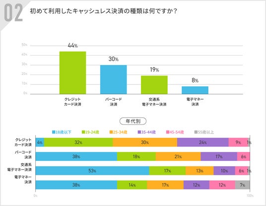 キャッシュレス決済の利用を始めた年齢は18歳以下の学生層が最多、クレジットカードが最も使用されている
