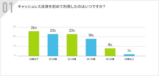 キャッシュレス決済を初めて利用した年齢は18歳以下が一番多い結果となりました。