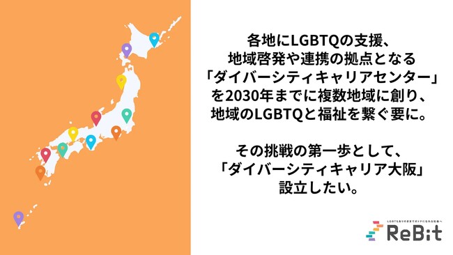 LGBTQの学齢期・就労期の課題に取り組んできた、認定NPO法人ReBit(東京都渋谷区、代表理事:藥師実芳)は、関西でもLGBTQも安全に福祉サービスを利用できるようにするため、多様性と福祉の架け橋となるセンターを大阪で開所・運営のための寄付を募るクラウドファンディングを開始しました。