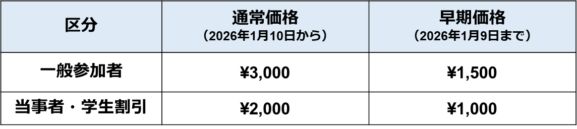World Cancer Week 2026では、より多くの方にご参加いただくため、参加区分ごとに2種類のチケットをご用意しました。2026年1月9日(金)までは、お得な「早割価格」が適用されます。