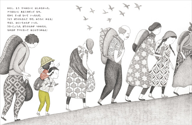 本書は、戦争、難民をテーマにイランの作家によって2019年に描かれました。2021年ブラチスラバ世界絵本原画展金牌を受賞。これまでに、オランダやフランスなど5カ国で翻訳出版されています。