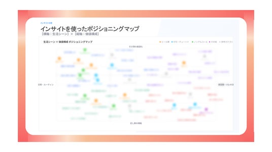 また、今回の分析によって、消費者心理を体系的に整理したインサイト群が可視化されたことで、より消費者視点に立った議論を深めることが可能になりました。特に、ポジショニングマップは複数ブランドの立ち位置を俯瞰的に把握できるため、ブランド戦略や商品企画に関する検討において、共通の議論基盤として活用されています。
